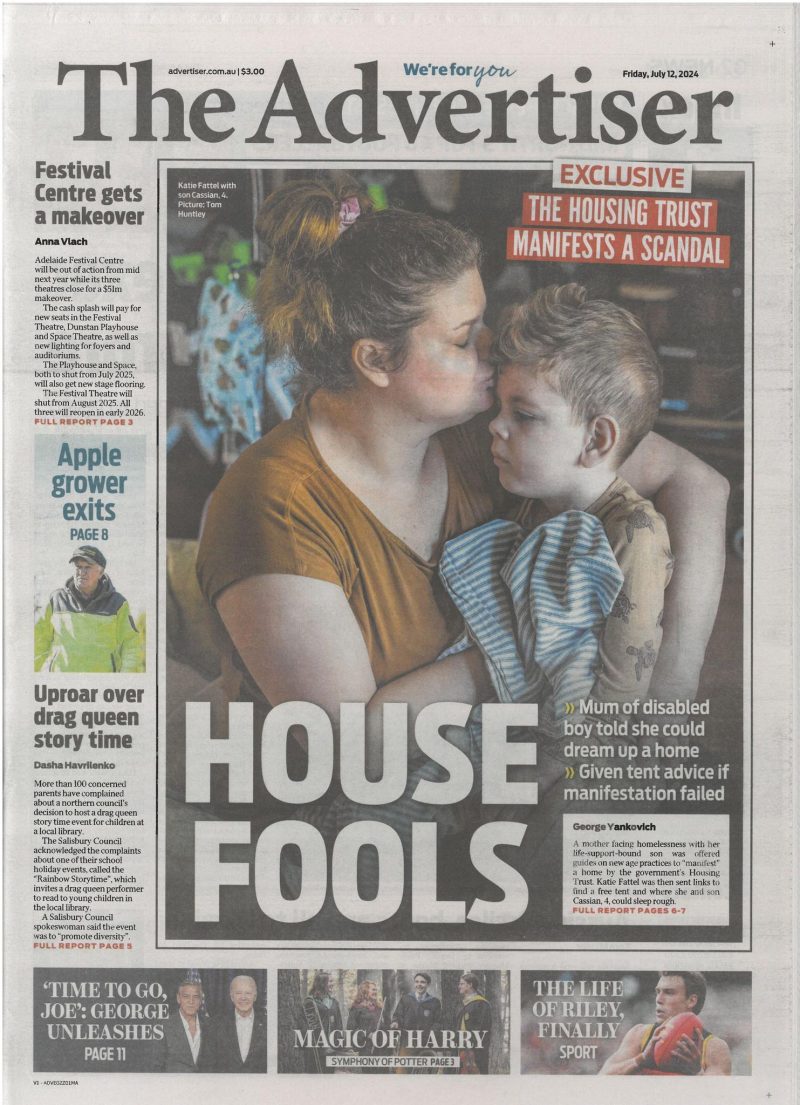 Katie’s in a horrendous situation: she’s had to deal with our massive public housing shortfall (a few hundred extra homes just won’t cut it), and some very unfortunate comments from Housing SA staff.